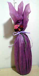 21 August ボトルラッピング ある法人お客様から 社内で成績の優秀な人に配るギフトのようなものを用意できないか というご相談を受けたフナヨです。 ギフトと言えば、コンペの商品や、お中元的なもの、お客様にお持ちするもの、はたまたクリスマスギフトというご注文をいただくことが多いのですが、基本送り先に直送の場合が多いので通常は箱入れした形でお送りしているのですが 今回は社内で配るということで、箱に入れる必要はないとのこと。 ただ女性の方が多い職場なのでボトルを素敵にラッピングして欲しい というご注文が。 そしてお持ち帰りも素敵な袋で。。。というご注文。 まだ試作品の段階ですが こんなかんじでプリーツを入れたらどうかしらと思いました。 ボトルのところにこの写真だと見づらいのですが、造花をあしらってみました。 葡萄の実みたいな飾りを探してきてつけてみようかしら。。。。 手提げ袋はいつものクラフトじゃなくて透明の袋が確かあったような。。。。 会社からお持ち帰りになる時にちょっとでもウキウキしていただけるようなラッピング ただいま試行錯誤中です。 今年は秋冬に向かってギフトメニューの一新を考えております。 こんなギフトメニューを作るべし!というのがありましたら 是非ご一報ください。 がんばります。∠( ̄∧ ̄) [0回]