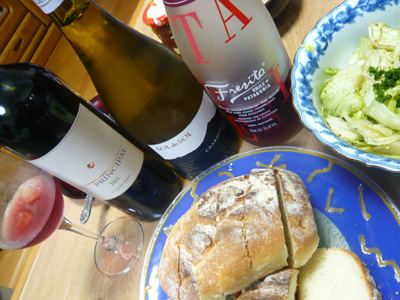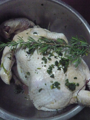 24 December Merry X'mas 25日まで着予定の荷物の発送も全て終わりましたので、この連休は久しぶりにゆっくり過ごすことに。 店長ご希望だったローストチキンのチキン君も22日には到着し、22日一日かけて解答。夜から下味をつけて準備万全で23日を迎えました。 以前チキンを焼いたときになかなか味がつかなかった記憶があったので、前日から下ごしらえ。 タイムとローズマリー、塩コショウ パセリ等々。オリーブオイルも。 にんにくをすったものをこすり付けて一日寝かせました。 あとで思うとにんにくはいらなかったかも。 あとオイルもほとんどいらなかったかも。 自分的にはもう少しさっぱり味にすればよかったと少し反省。 付け合せは、レタスのサラダと、マッシュポテト、それとフナヨパンです。 ここのところパン失敗続きでしたが、今回は成功のうちです。 ワインには自家製天然酵母のパンがGOODなのですが、今回は酵母がたたず、やむをえずイースト使ってます。 サフのドライイーストです。 いただいたワインは フレシータ SOL DE SOL 2004 ElPRINCIPAL 2001 フレシータ イチゴスパークリングは氷を入れていただいております。 母に大好評。 ワインを飲みなれていない人でも美味しく飲めますし華やかで楽しいスパークリングです。 美味しかったです♪ サラダにポテト、パンと相性よかったです。 SOL DE SOLはやっぱり美味しい。黄金色で、酸がはっきりしていて、はちみつとローストしたナッツの印象。バランスが素晴らしい。かなりミネラル感もあって少し塩気も感じました。 パン、マッシュポテト、チキンのどれとも相性がよかったです。 ELPRINCIPALは最初は開かなかったけれども、徐々に本領を発揮してスパイスやブラックベリー、タバコや葉巻のような香りも。湿った細かいタンニンが非常にスムーズでした。 正直今日の料理にはELPRINCIPALは強すぎです。やっぱり食事にあわせるよりはワインだけでシガーかなんかくゆらせながら飲まないとやってられません。(笑 そしてチキンはどうなったかというと じゃじゃーん。 こうなりました。どこか洗面器でおぼれている人みたいですが、チキンです。 足を結わえてたタコ糸が途中で切れちゃったので、ちょっと足が開き気味ですが、こんがり美味しそうに焼けましたよ。 このあと店長が切り分けてお皿にもっていただきました。 あんまりおなかが空いていたので、すぐ切り分けちゃったので、丸焼き状態は2分くらいで、唯一残ったのがこの写真でした。(涙 食べるの早すぎ。 簡単でゴージャスな料理なので、ちょっとしたおもてなしにオススメですね。 ちなみにチキンはネットで1羽1800円で鶏専門農家のショップから買いました。送料込みで2500円ほどです。 下味を適当につけてオーブンで2時間も焼けばできあがりです。簡単ですね。 オーブンは最初220度で1時間15分くらい表と裏をたまにひっくり返しながら 最後に240度にあげて表面をこんがりさせました。 最初低めの温度で中まで火を通すこと、ひっくり返すときに、出た油を上からかけることがコツといえばコツみたいです。 ワインのお供に是非 お試しくださいませ。(笑 [0回]PR